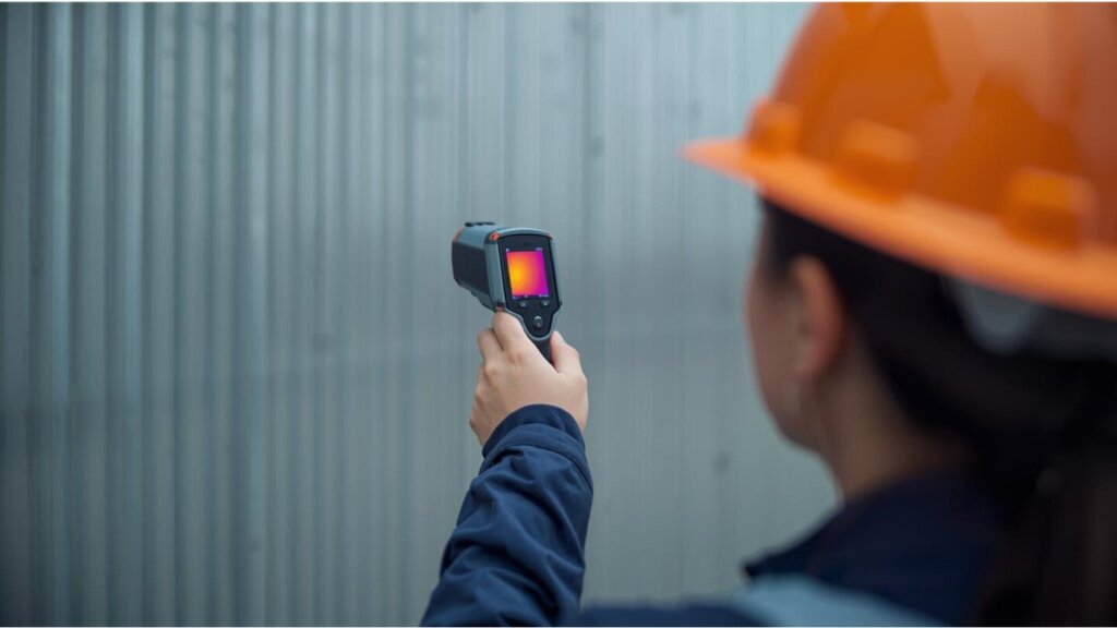 ドローンに搭載したサーモグラフィカメラで屋根を撮影し、「夏場の屋根表面温度が65℃に達しており、これが空調負荷の原因です」という証拠写真を撮ります。