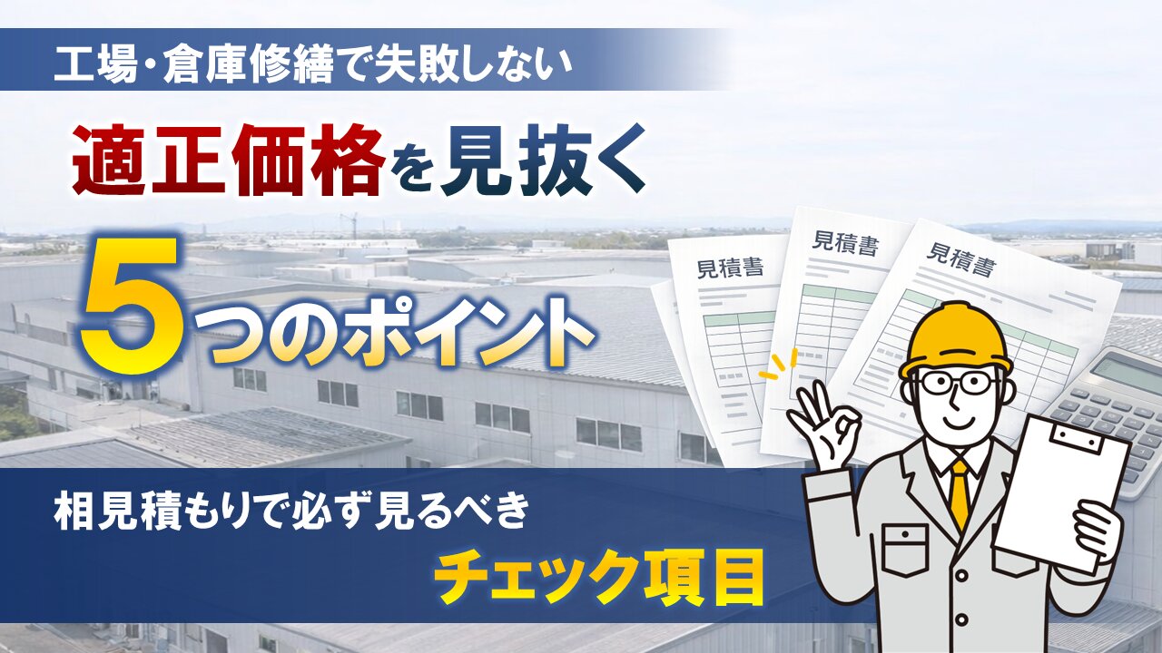 最新の市場動向を加味した、工場・倉庫修繕の費用目安をまとめました。お手元の見積書と比較してみてください。