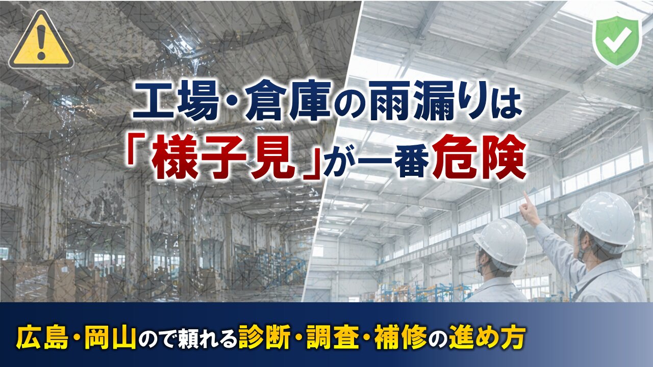 今回は 「工場・倉庫の雨漏りは「様子見」が一番危険─岡山・広島で頼れる診断・調査・補修の進め方」 を詳しく解説いたします。