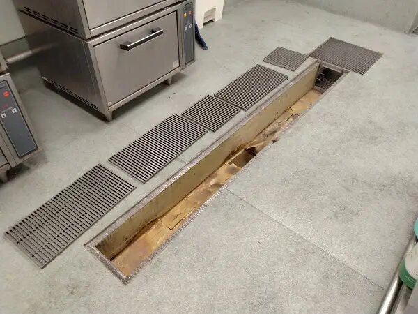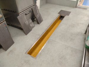 【岡山県笠岡市・施工事例】病院厨房の排水溝を4時間で再生!