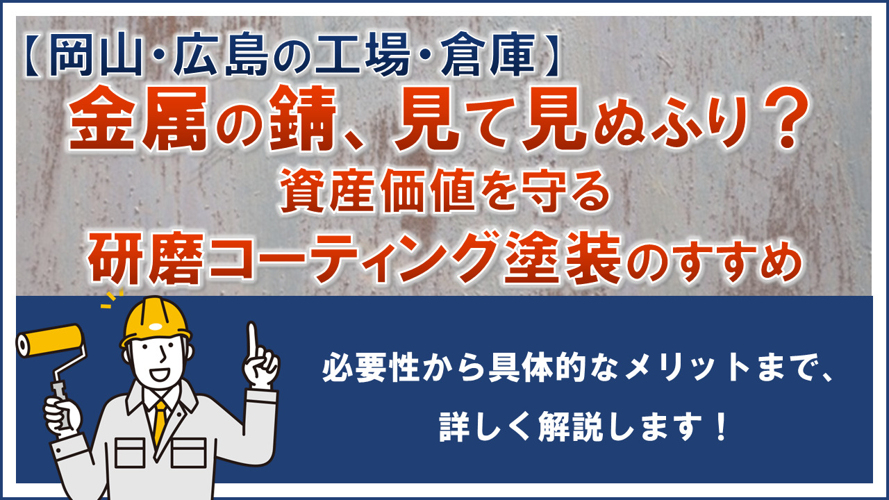 この記事では、岡山・広島エリアで数多くの倉庫・工場の塗装を手掛けてきた私たちイマガワペイントが、「【岡山・広島の工場・倉庫】金属の錆、見て見ぬふり?資産価値を守る研磨コーティング塗装のすすめ」 を詳しく解説いたします。