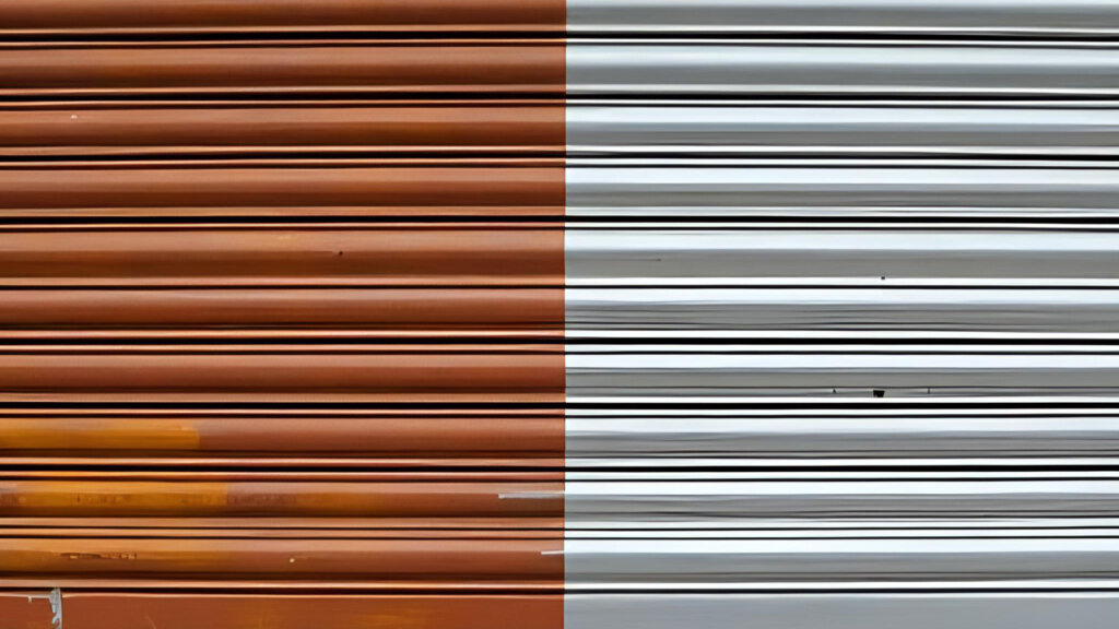 赤茶色に錆びついた外壁やシャッターは、どうしても古びた、管理が行き届いていないという印象を与えてしまいます。