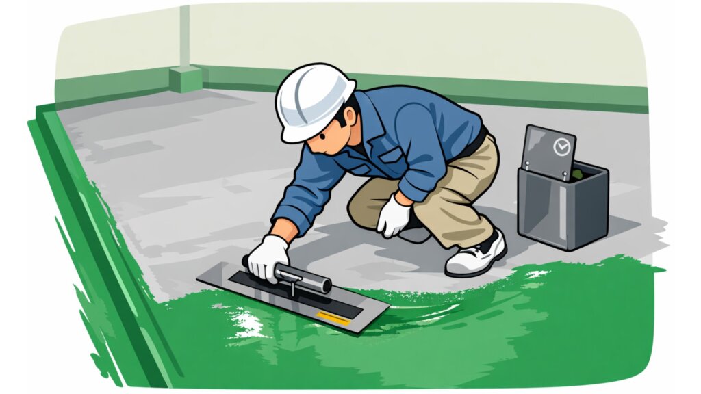 これは「塗料を塗る」というよりは、「樹脂の層を流し込んで、新しい床を作る」というイメージに近いです。
