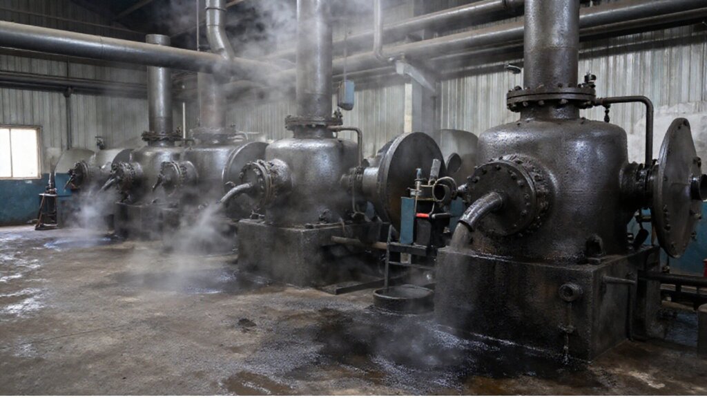 自動車部品工場や鉄工所などでは、長年の操業で床に機械油が染み込んでいるケースがよくあります。