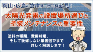 今回は、岡山・広島エリアで倉庫や工場の屋根塗装を手掛ける専門家の視点から、太陽光発電システム導入で失敗しないための見積もりの見極め方と業者の選定基準について詳しく解説しました。