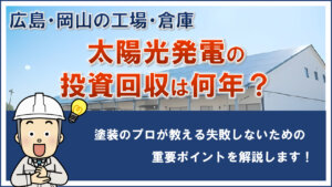 しかし、岡山・広島で数多くの倉庫・工場の屋根を見てきた塗装のプロとして、太陽光発電の設置に最適な屋根の状態を診断し、長期的な視点に立った最適な屋根塗装プランをご提案することができます。