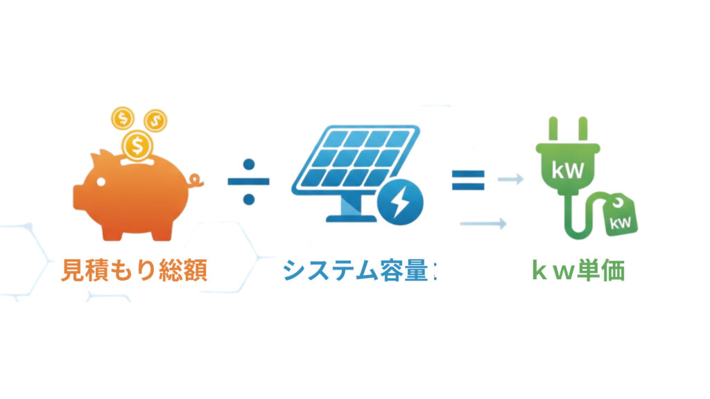 計算式:kW単価 = 見積もり総額(税抜) ÷ システム容量(kW)