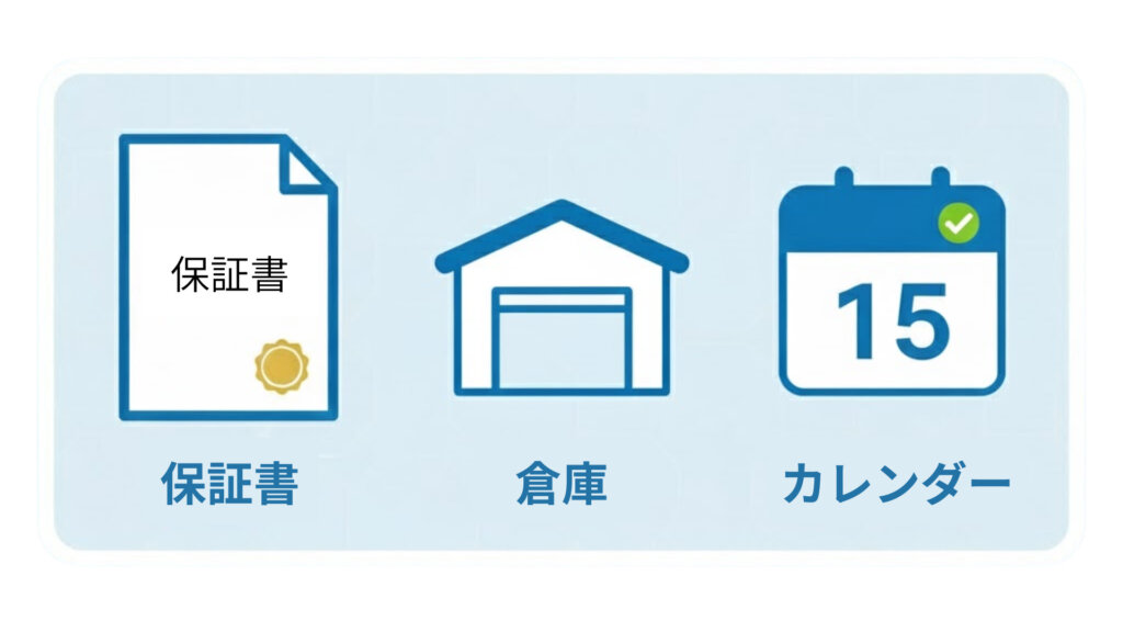 確認すべき保証は主に以下の3つです。