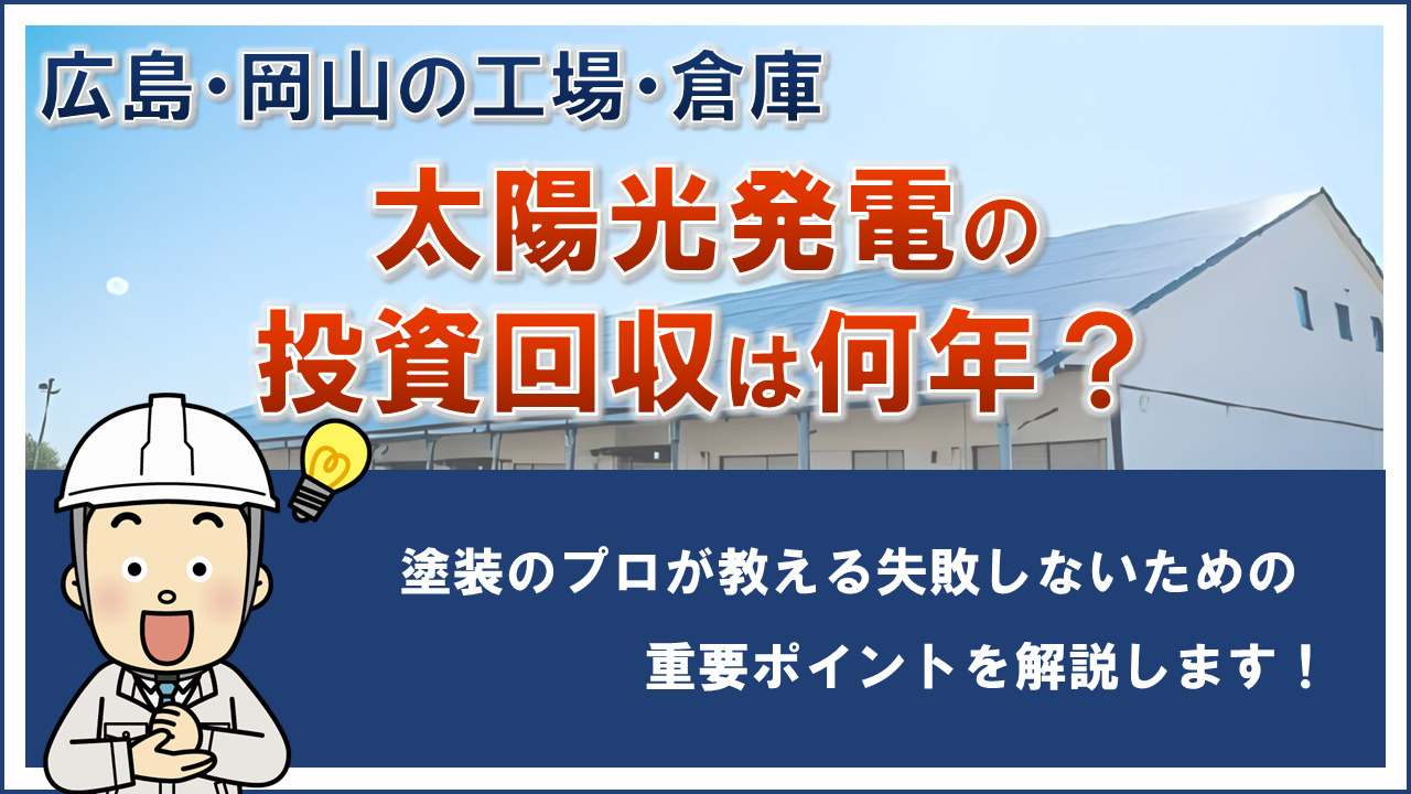 今回は 「【岡山・広島の工場・倉庫】太陽光発電の投資回収は何年?塗装のプロが教える失敗しないための重要ポイント」 を詳しく解説いたします。